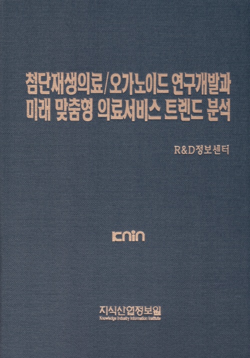 이에 본원 R&D정보센터에서는 첨단재생의료 분야의 안정적 성장과 글로벌 경쟁력 확보를 위해 「첨단재생의료/오가노이드 연구개발과 미래 맞춤형 의료서비스 트렌드 분석」을 발간하였다. 1편에서는 글로벌 오가노이드 연구개발 동향을, 2편에서는 첨단재생의료 치료제부문과 기반산업 부문에서의 최신동향을 다루었다. 본서가 학계·연구기관 및 관련 산업분야 종사자 여러분들에게 다소나마 유익한 정보자료로 활용되기를 바라는 바입니다.